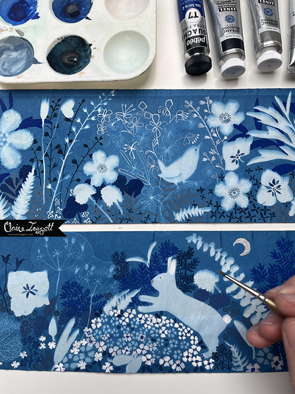 This cyanotype print on paper had been knocking about the studio for aaaages as I wasn’t quite sure what to do with it. Then one day inspiration struck like lightning and I realised it just needed filling in, in places with paint.