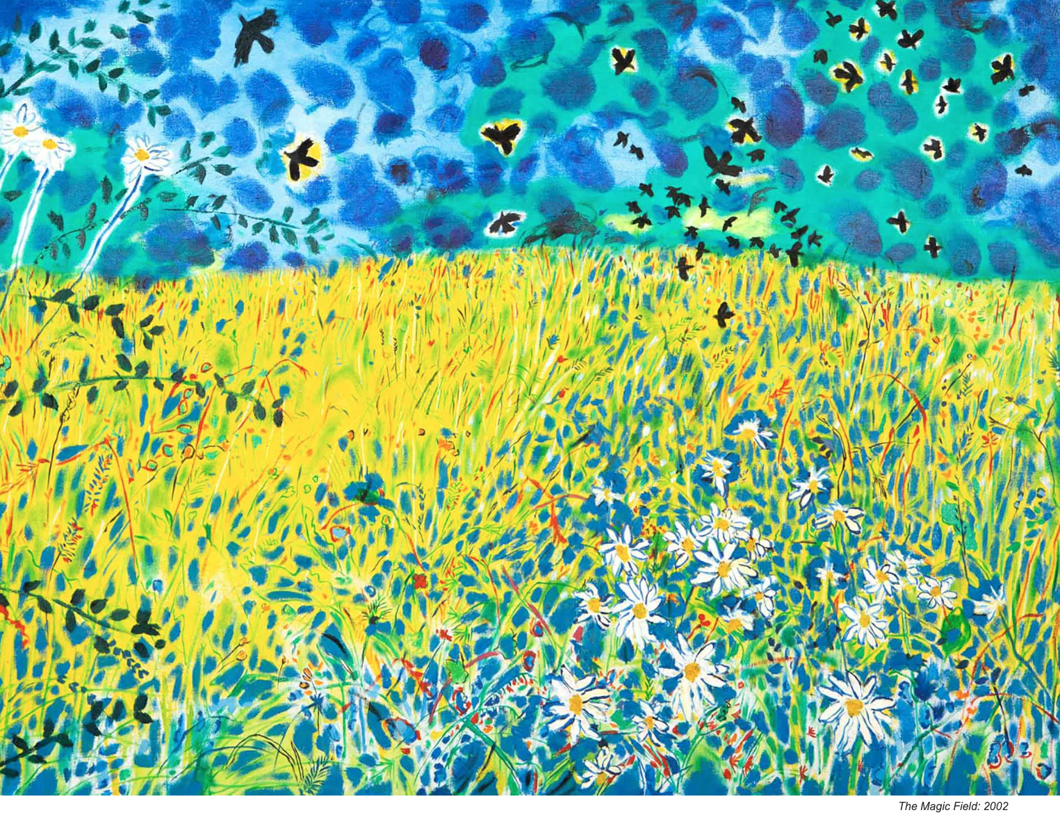 The colours spoke to me! I am really enjoying using neon and fluro colours at the moment myself so Philip Suttons work caught my eye instantly. I also love how pattern orientated his approach is. And also that halo of blue around the flowers where he’s painted up to it afterwards – it kind of glows.