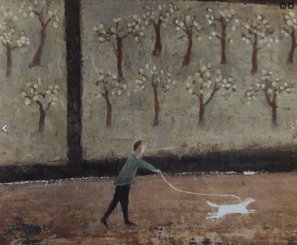 Can’t find a single thing out about this guy. So its just one piece of work to study for now but what a piece. Unfortunately my photo of the whole picture is blurred but you can see the level of detail from these 2 close-ups. What fantastic use of tone, a solid black background, gouache paint (my fave) and layering.