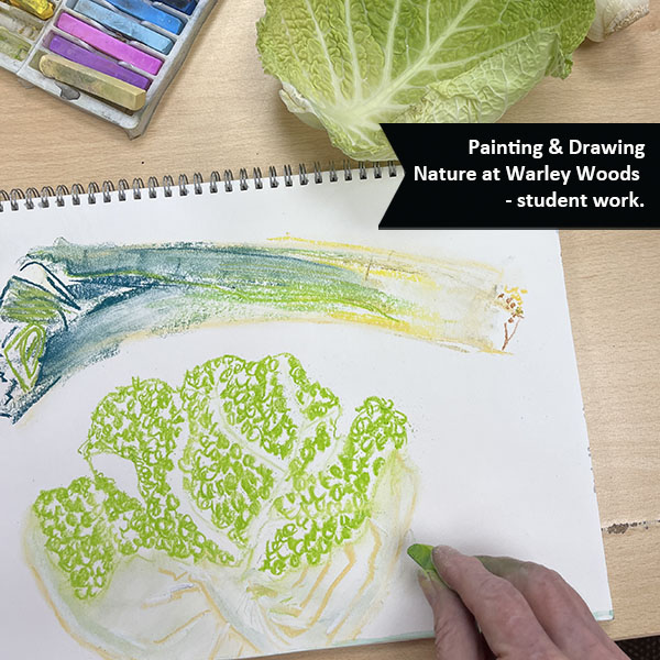 At Warley Woods we look at drawing and painting things from the broader spectrum of ‘Nature’ and this can include landscape, mushrooms, shells, vegetables, butterflies etc. Then take a walk round the 35 hectare parkland and get your steps in.