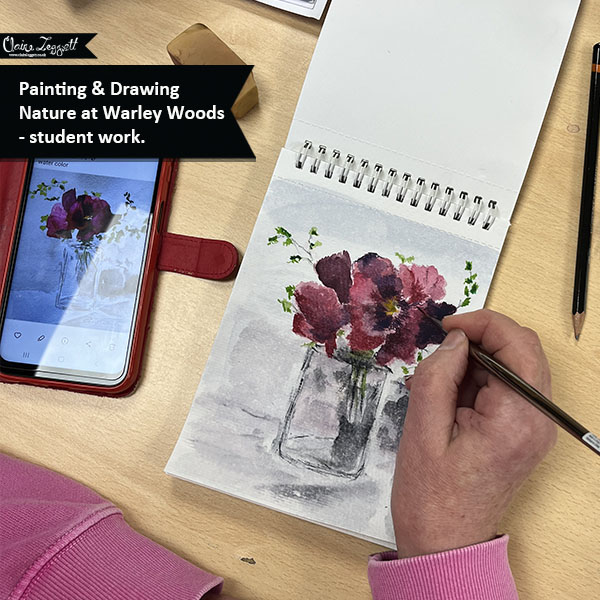 I currently run two: one called Painting & Drawing Flowers at Winterbourne House & Garden on a Tuesday morning and on a Wednesday morning at Warley Woods called Painting & Drawing Nature.