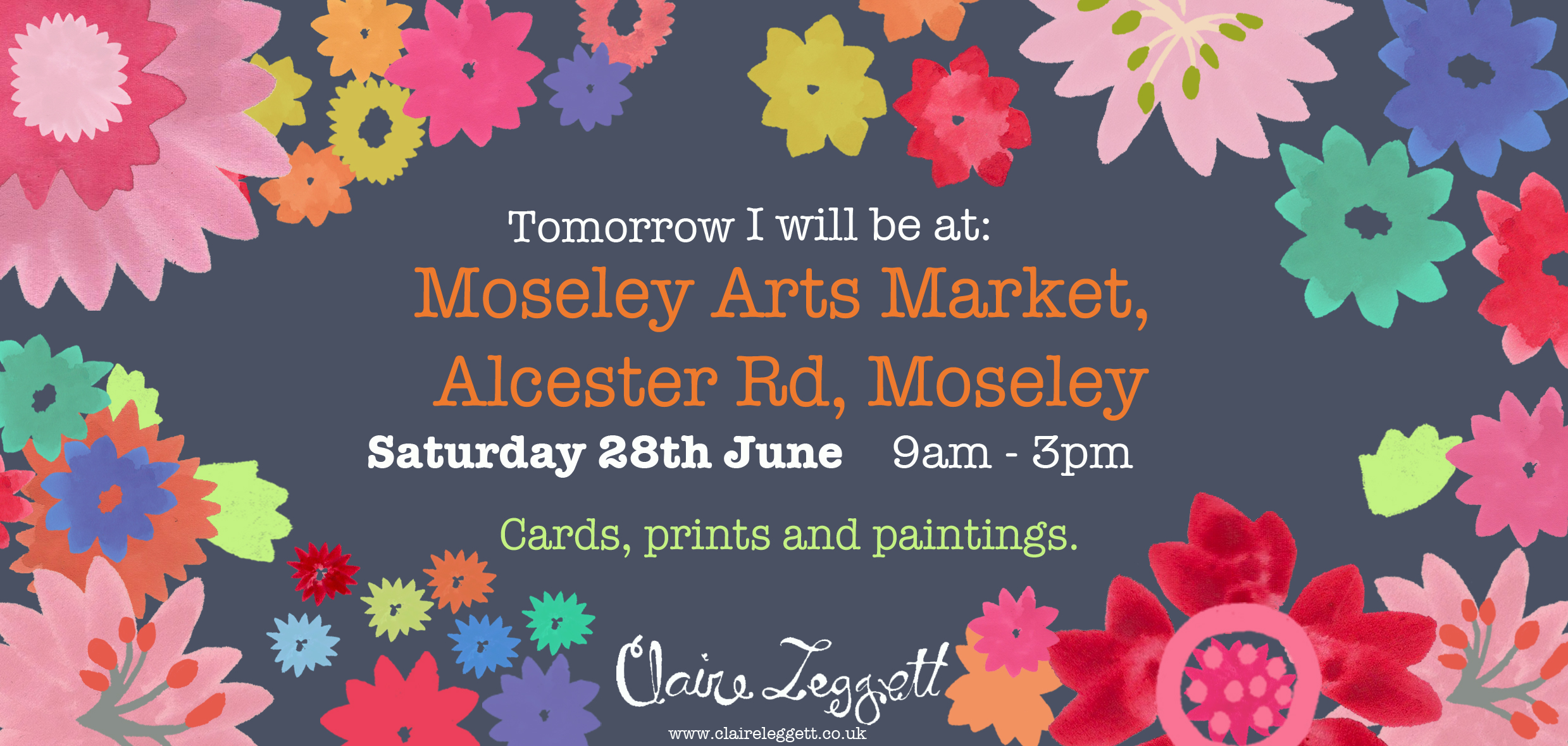 Tomorrow: Saturday 28th June 9am – 3pm, I will be at: Moseley Arts Market, Alcester Rd, Moseley, selling cards, prints and paintings.
