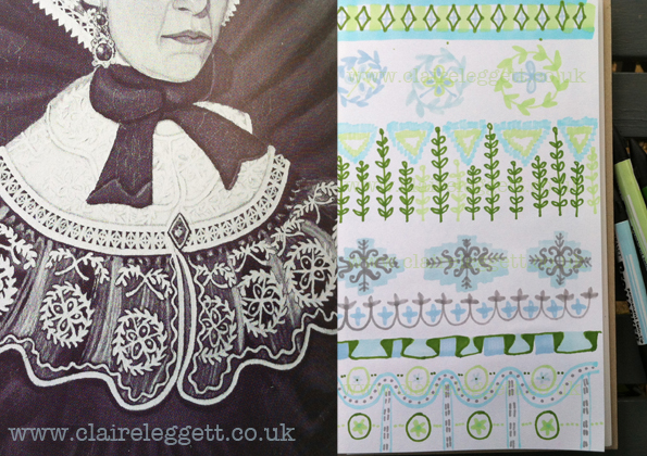 And a few hours was spent sketch book doodling the patterns in the women dress.