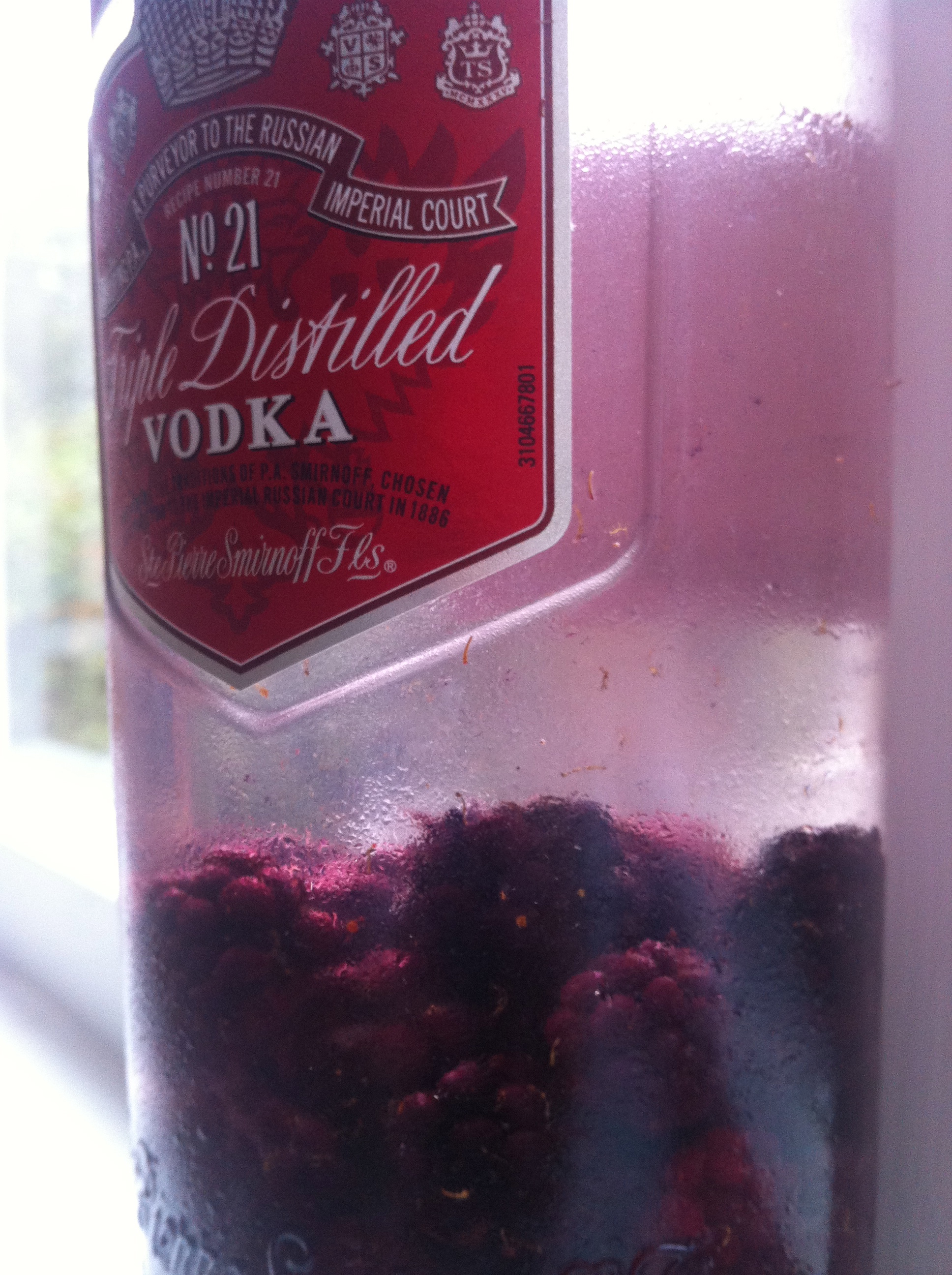 After suffering all weekend from a really nasty cold, pottering about is all I’m up to and what better way to recuperate than make the Christmas cake and begin a batch of Blackberry vodka!
