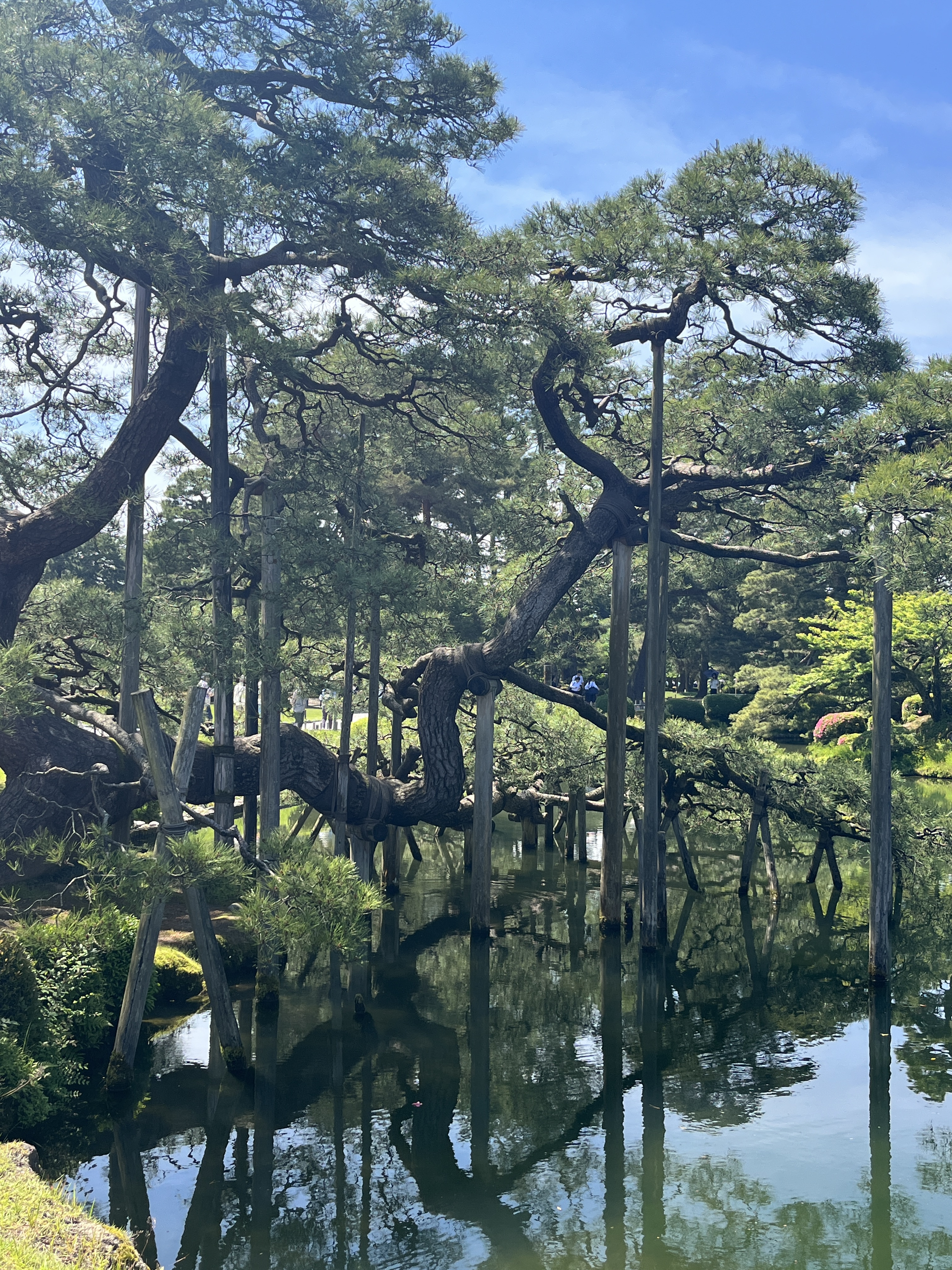 Which set us up nicely for more to come in and around Osaka: sunlit gardens where shadows played on the limited green palette but were still delightful for all the simplicity, traditional wooden houses and lanterns, Koi Carp in fishponds and ancient trees lovingly nurtured and supported through time.