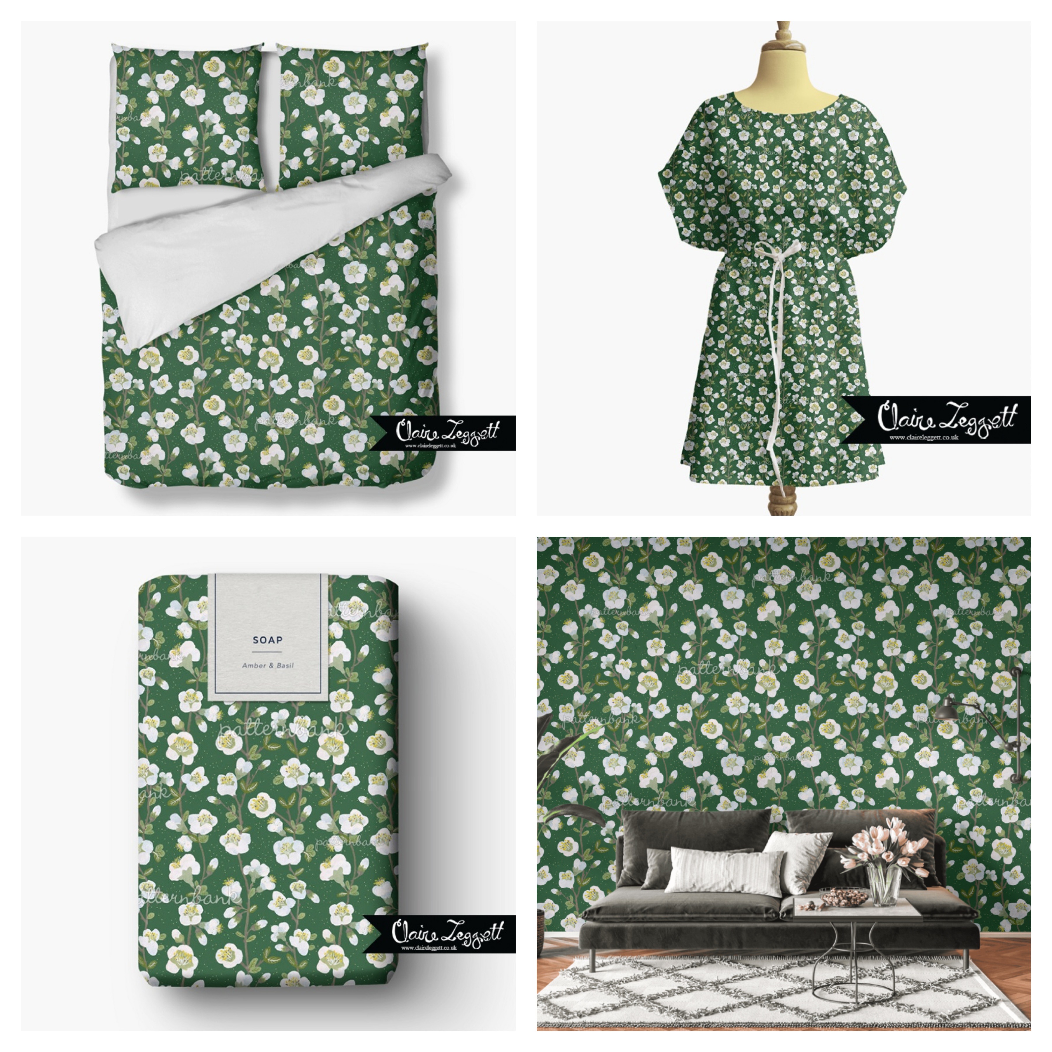 This is my recent Japonica painting put into a pattern repeat and some of the cool mock-ups that #patternbank use.