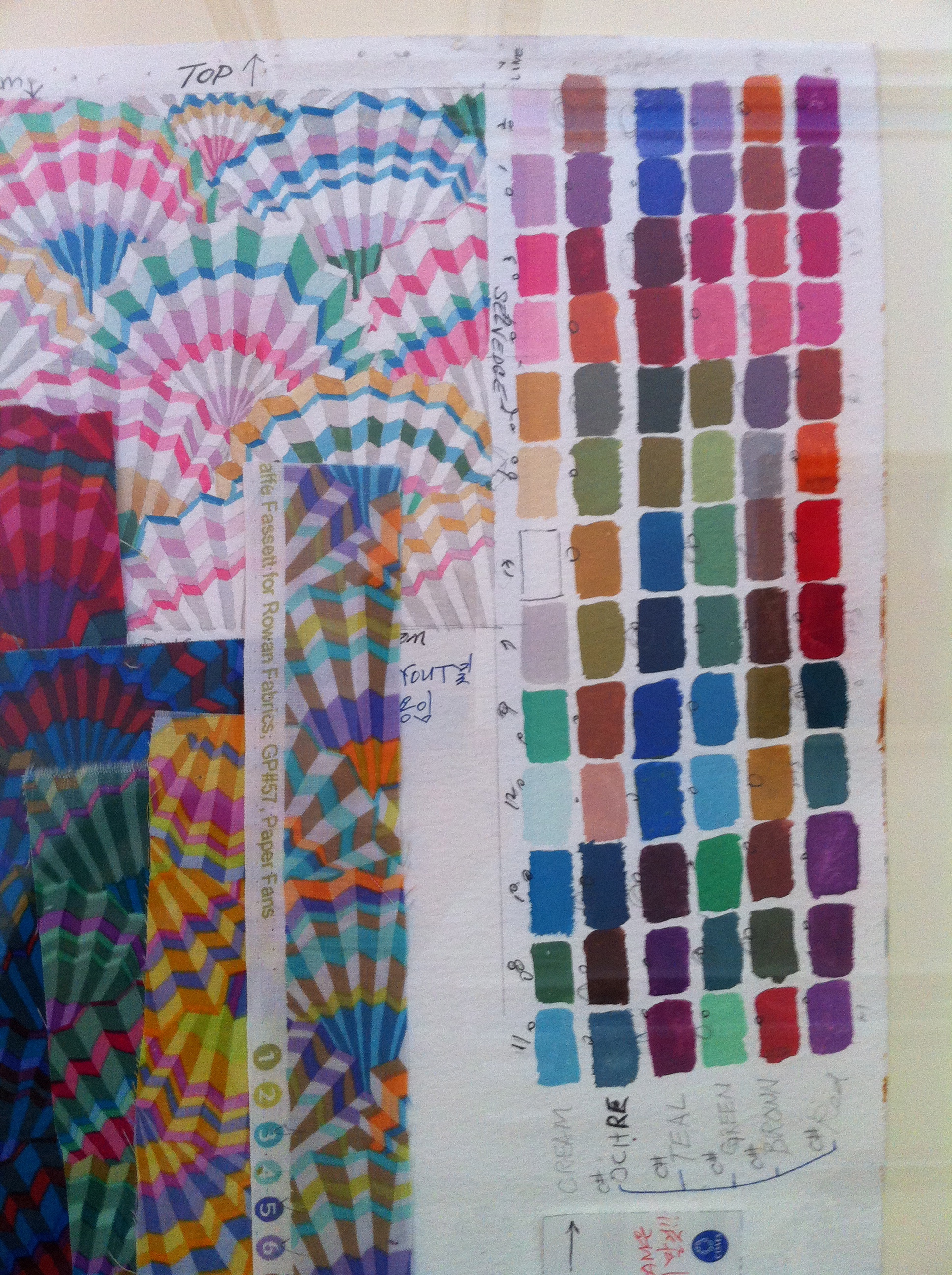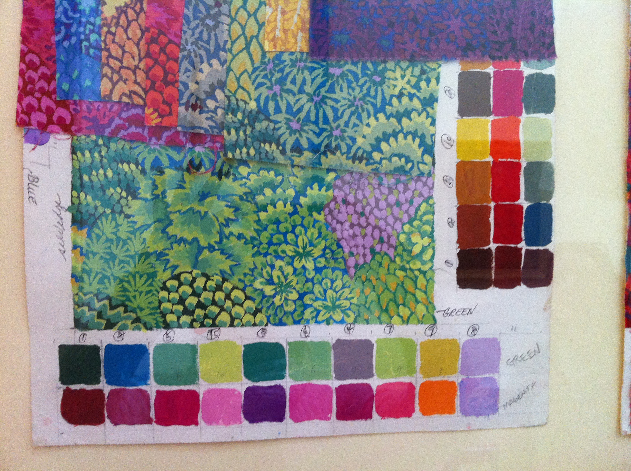 Inside the American Museum in Britain are these gorgeous pieces which are the colour separations that the printer would have used to print the Kaffe Fassett fabric lengths.