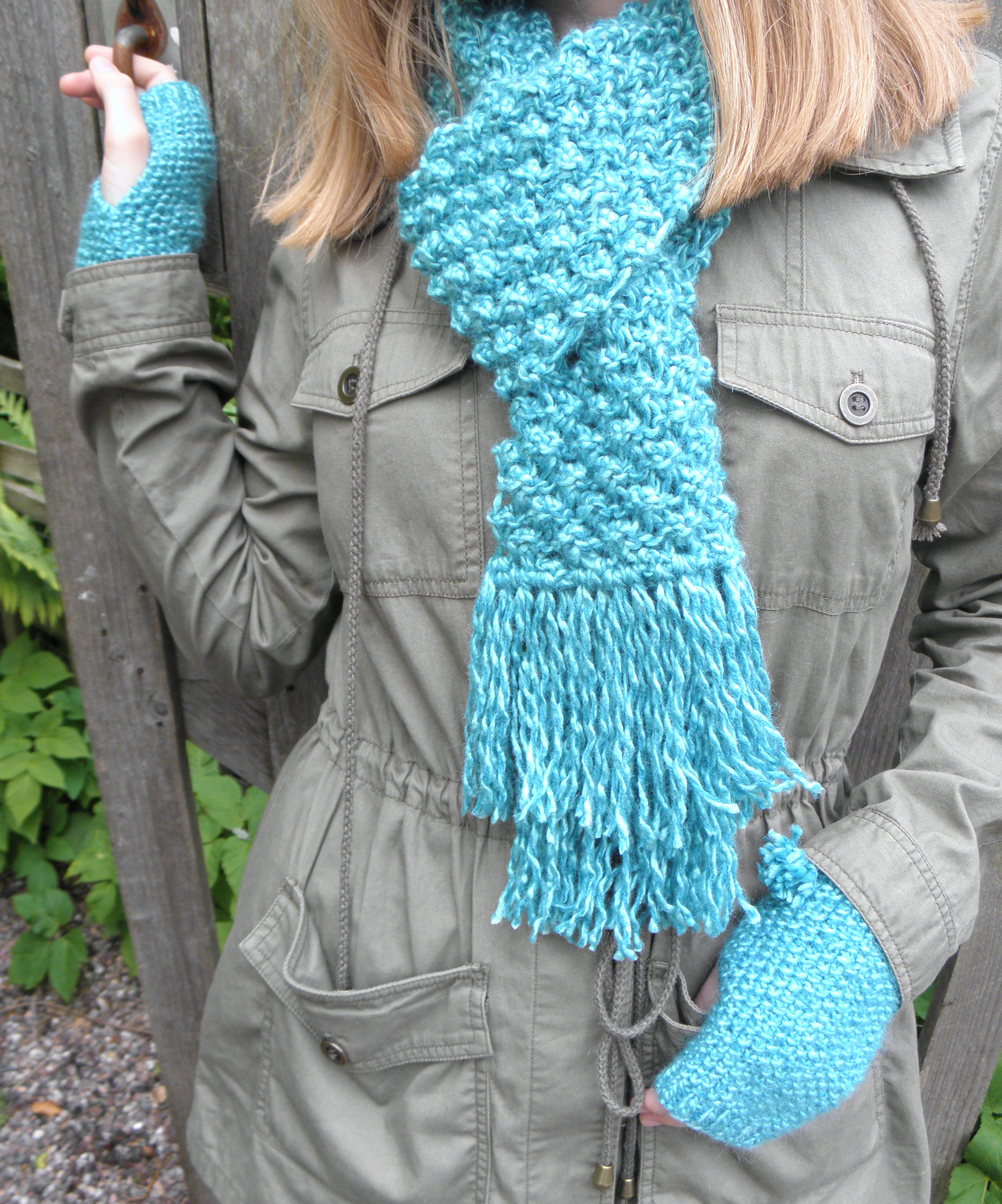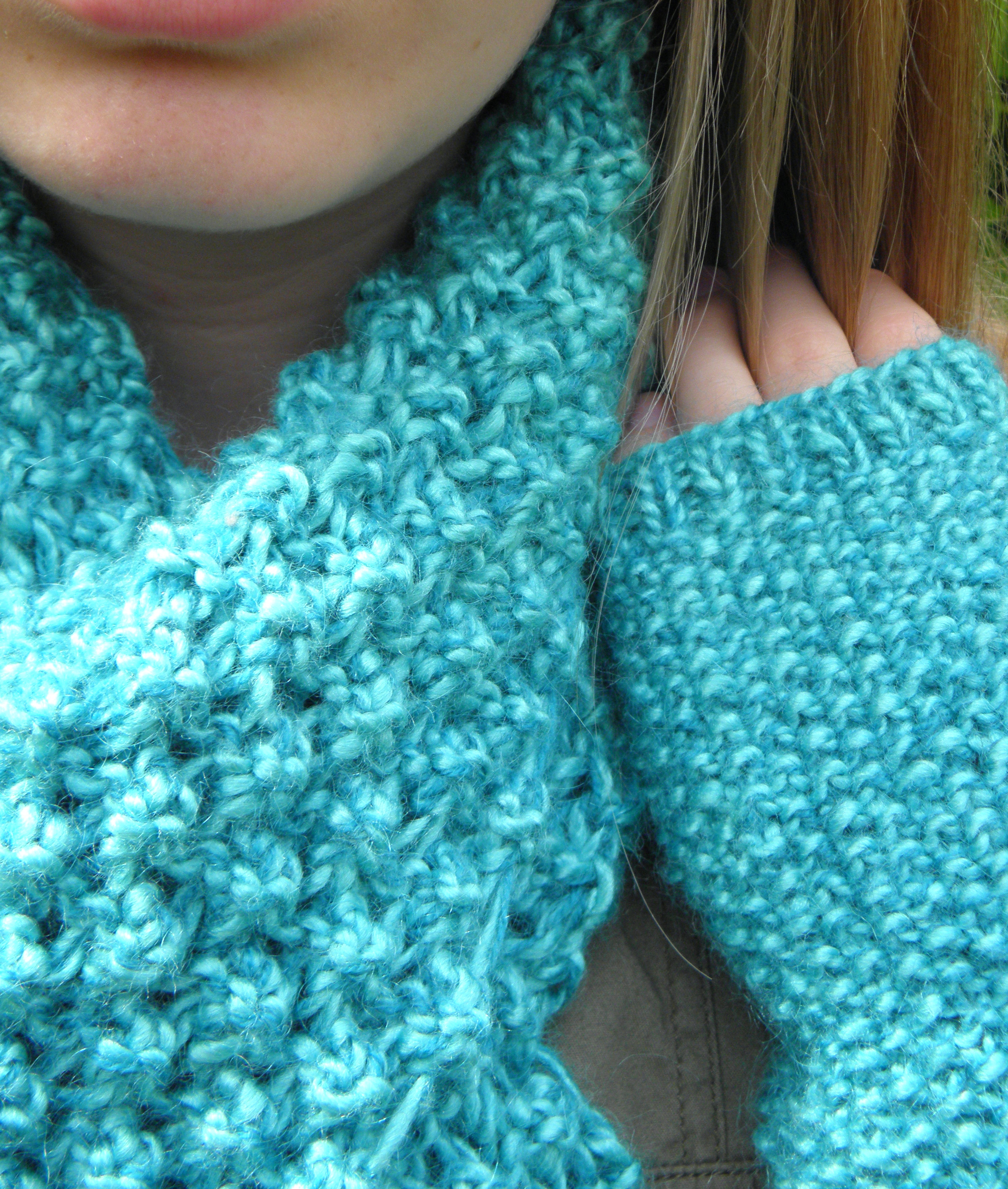 As promised here is the first of my Christmas makes – a scarf and wrist warmer set made for an old friend (well she’s not actually old but I’ve known her a long time!) and modelled by my daughter for the photo shoot earlier this Autumn ( I planned ahead!)