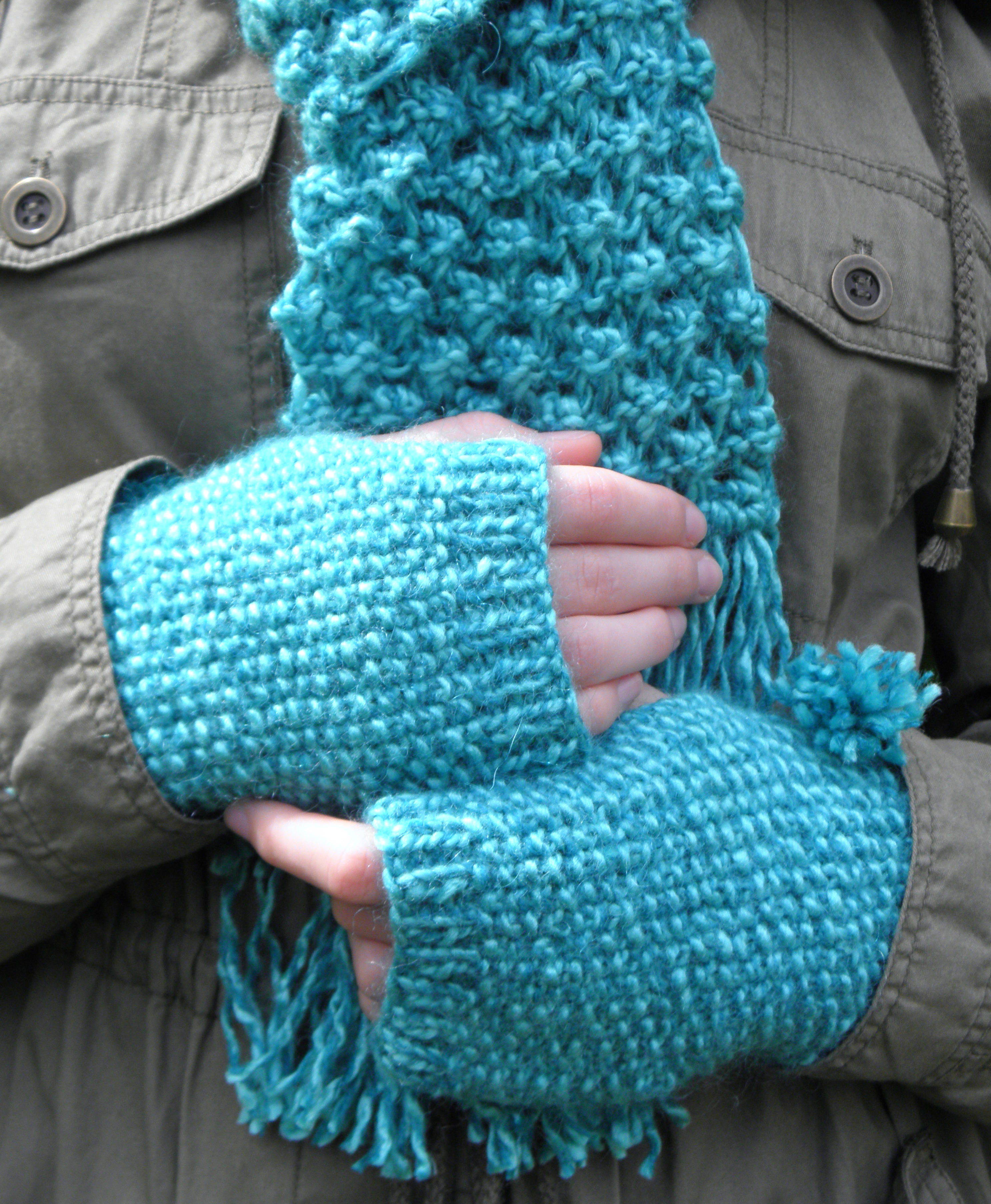 I found  the Carrie Handwarmers by Doris Chang on Ravelry and the Bramble Scarf came from yarnlaboratory.blogspot