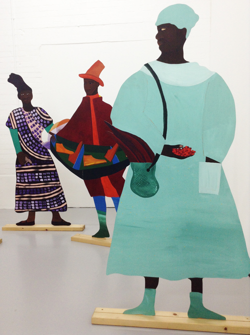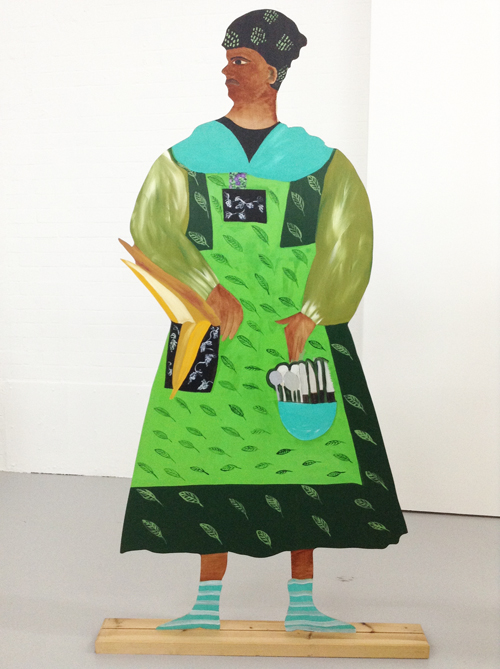 Historically these slaves were given new names and roles and Himid attached their printed stories on the back of each figure.