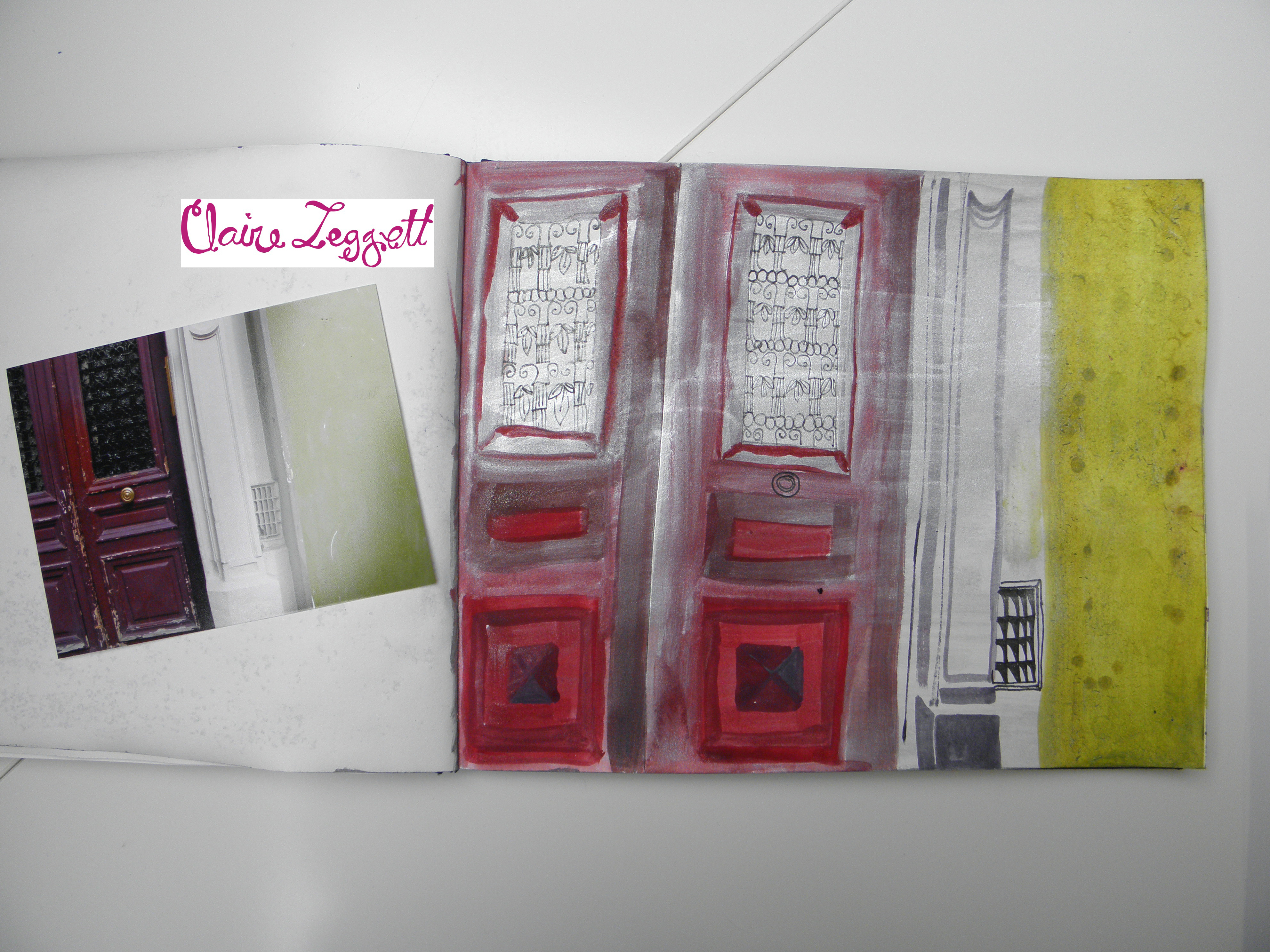 and I have actually enjoyed having a reason to play at whatever I liked in my sketchbook- some patterns, some black silhouettes, some Paris doorways, butterflies…