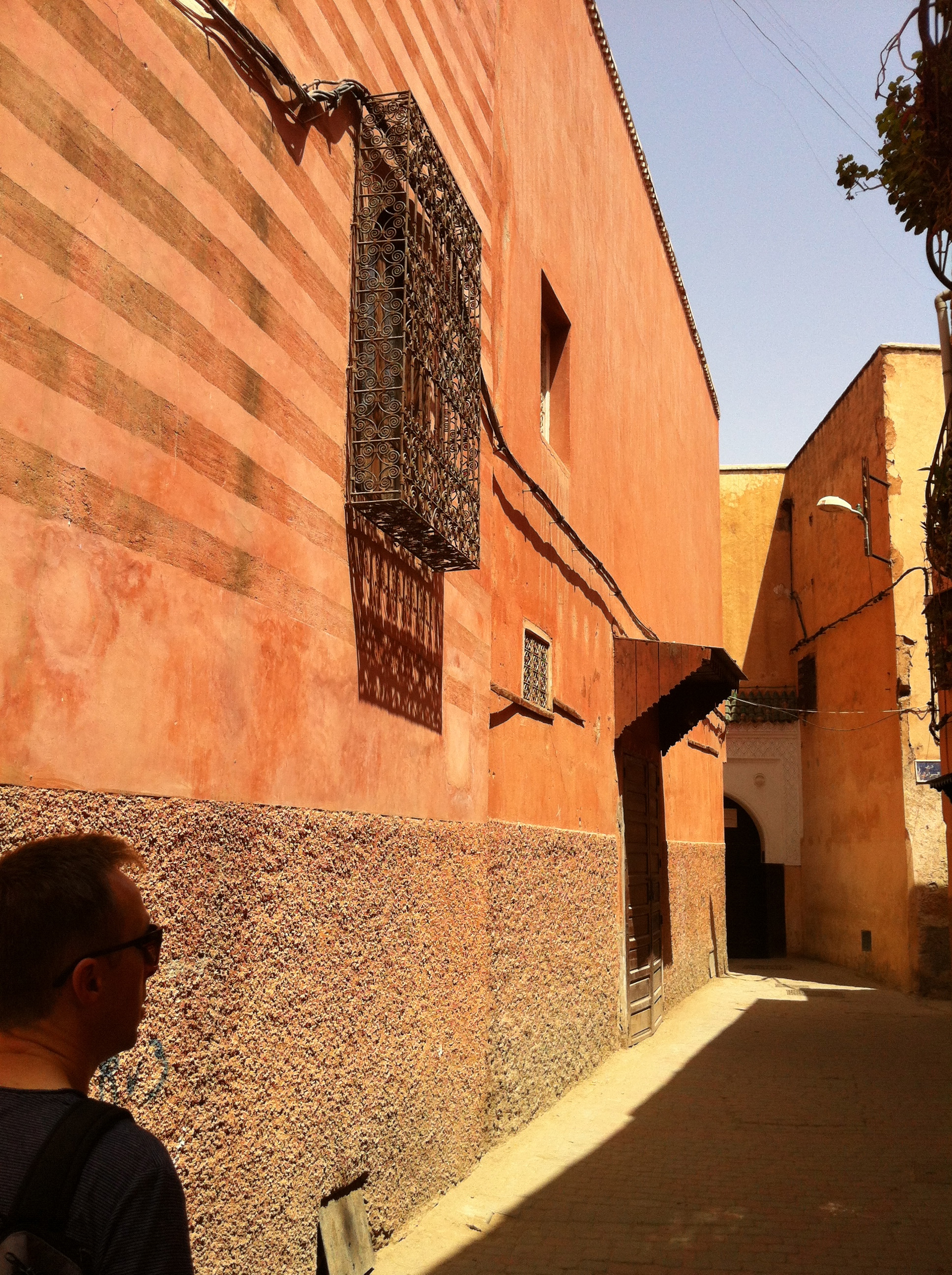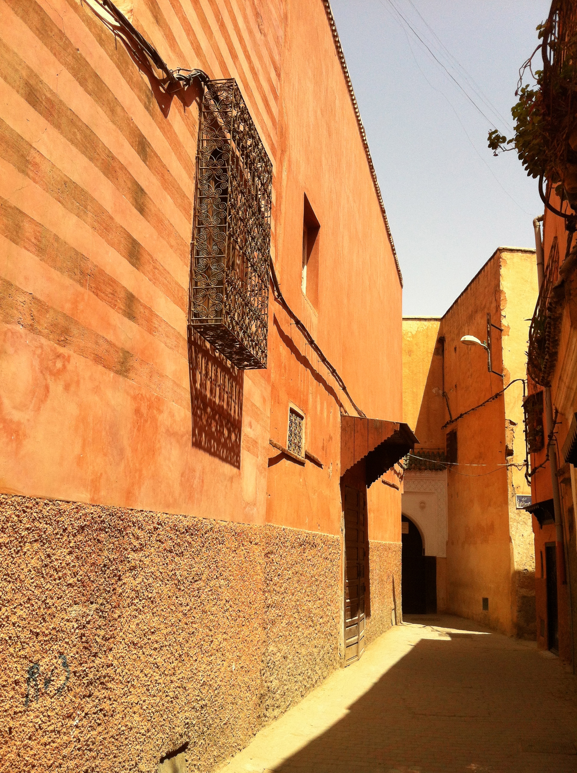 So I came home with a camera card full of alleyway pictures – striped plaster, rusty ironwork, carved wood, shadows and rugs.