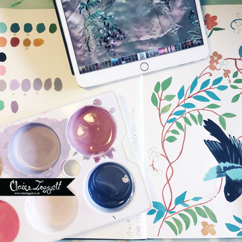 14 May 2020This print Alyssum, is one I’ve developed as part of my Artist in Residence work at Winterbourne House & Gardens, University of Birmingham, Edgbaston. It began with a painted sketch done on site which was then cleaned up on the computer and digitally altered into a repeating pattern. I also played around with colour options […]