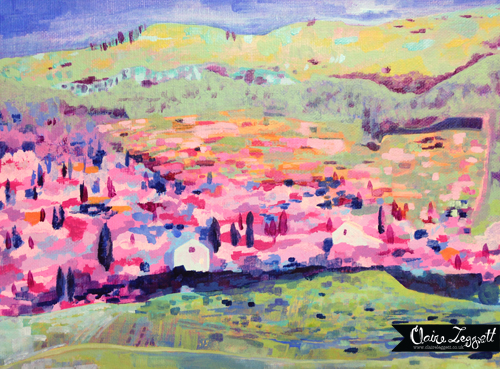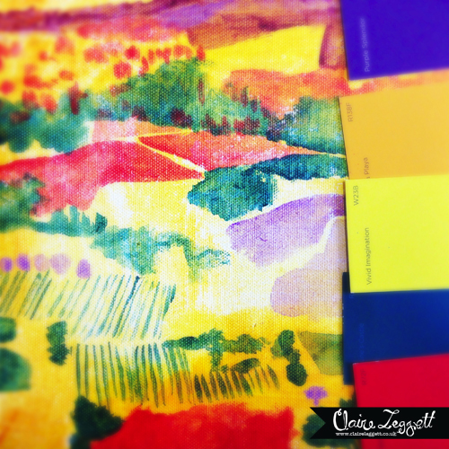 2 February 2017I’m so very ready for Spring now and there’s nothing like painting from holiday photos to banish the grey, wet days away. This one is from the south of France last year and is inspired by the Fauvists use of hot and cold, bright, bright colours.