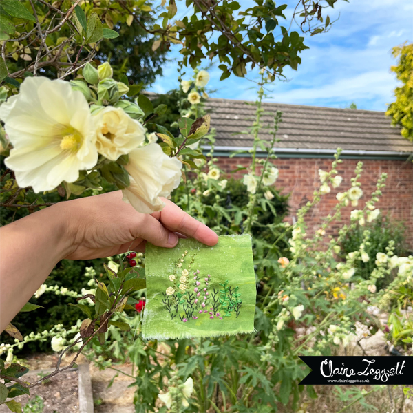 25 July 2022I spent the weekend in Mum & Dads Norfolk garden soaking up some sun and live inspiration for some stitchery. My dad was pleased as punch that this giant hollyhock self-seeded and grew this big in just this year. And I enjoyed translating it into embroidery.