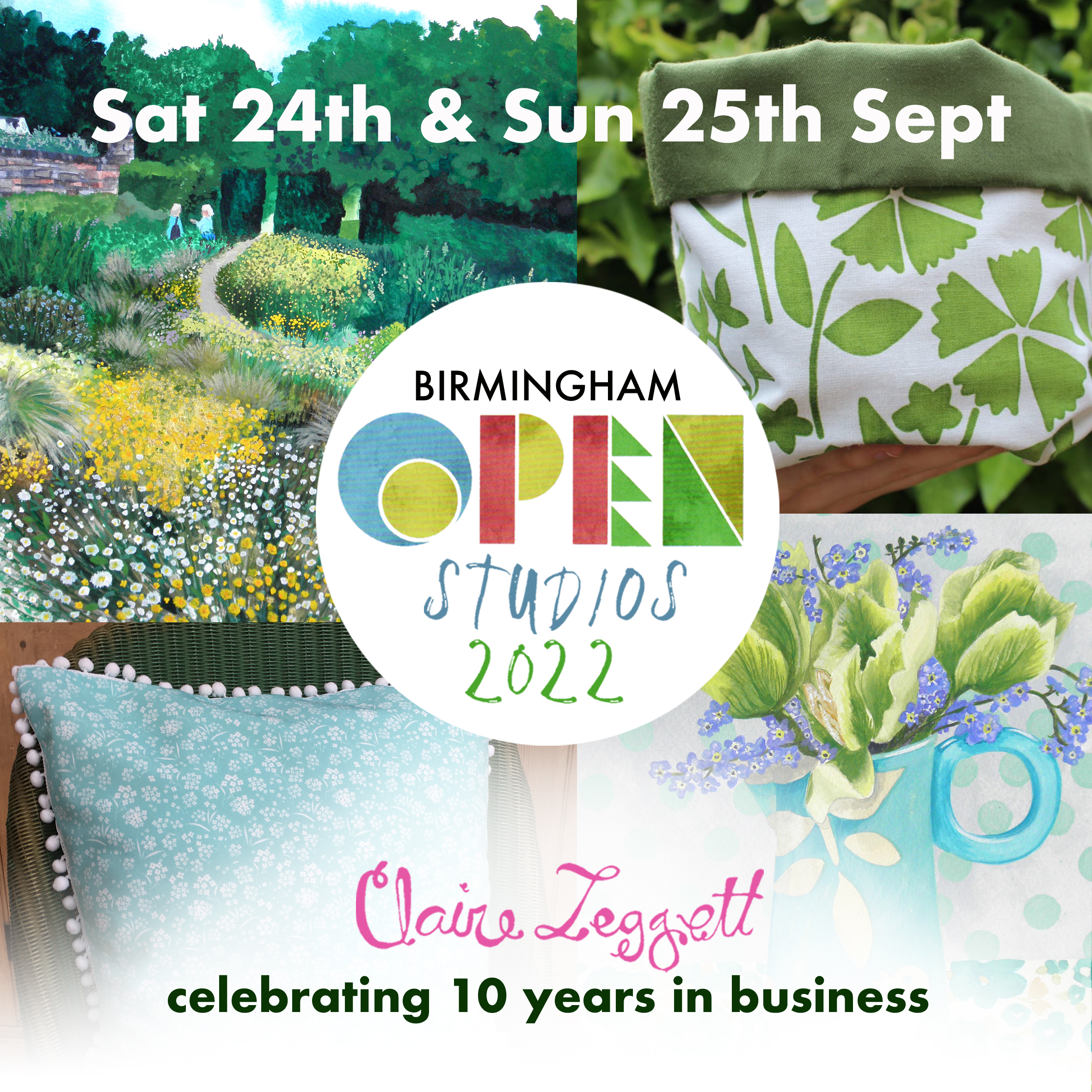 12 August 2022In a few weeks time I’ll have been self employed for 10 whole years – hard to believe really. So I’m joining in with this years Birmingham Open Studios. Please click the link for more details of where to find me etc – I’d love to see you… and there’ll be cakes 🙂