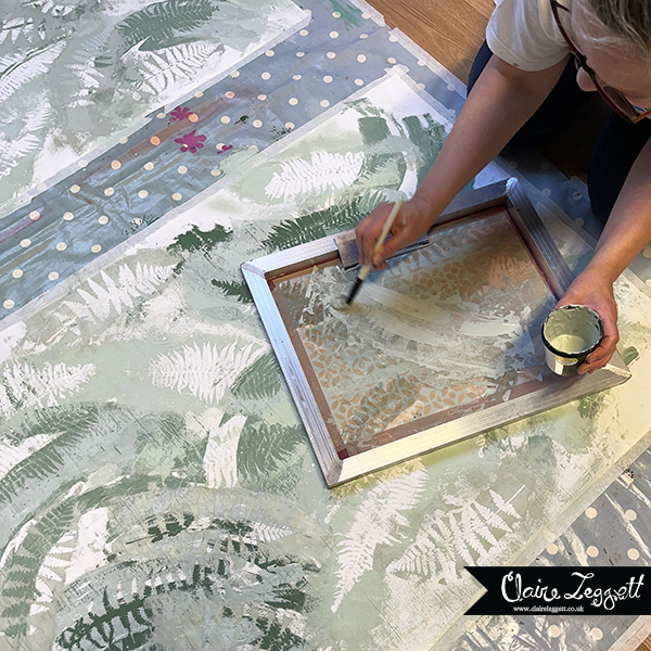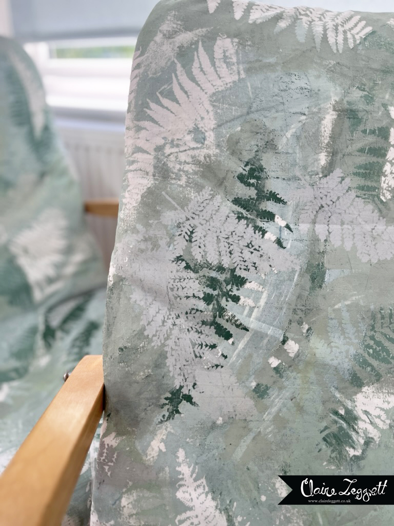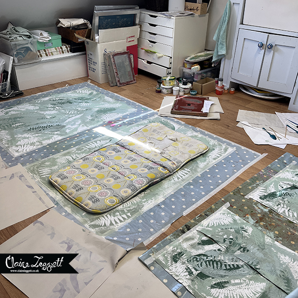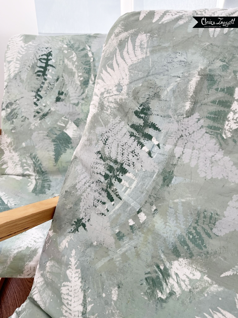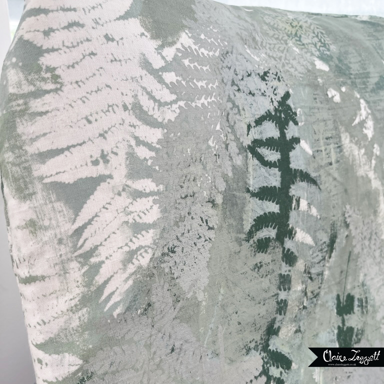 I tried to explain to my better half what I was thinking about doing – mono-printing the fabric and layering up the prints made with ferns from the garden – but it defied explanation.