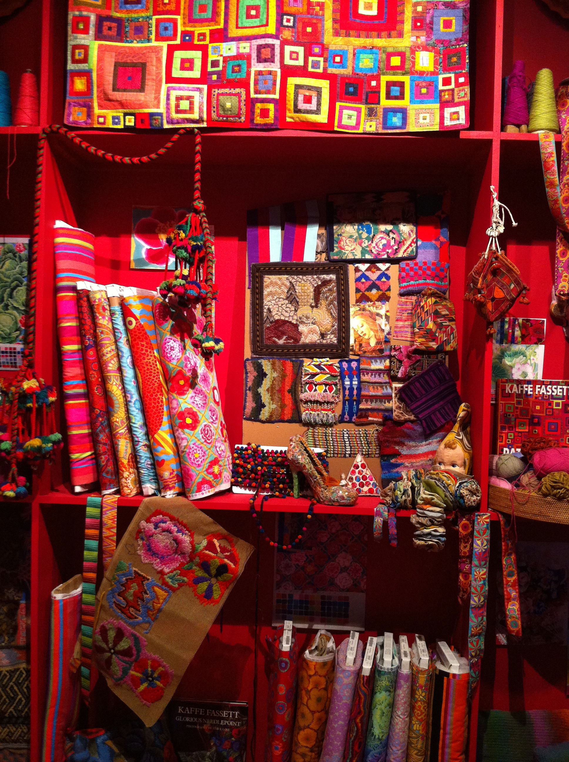 The Colourful World of Kaffe Fassett showed over a hundred pieces of textile, mosaic, painting, tapestry, knitting, quilting and beading spanning Kaffe Fassetts creative life to date.