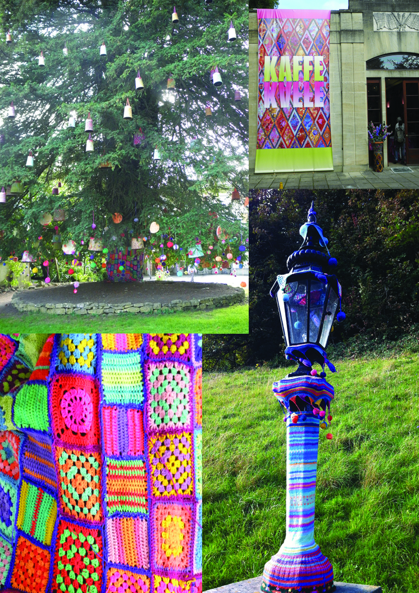 Coming up the drive to the American Museum we were greeted by some beautiful yarn bombing – the tree was decorated with fabric covered plant pots (looking like lampshades) and pompoms and crochet.