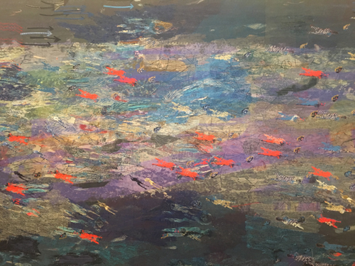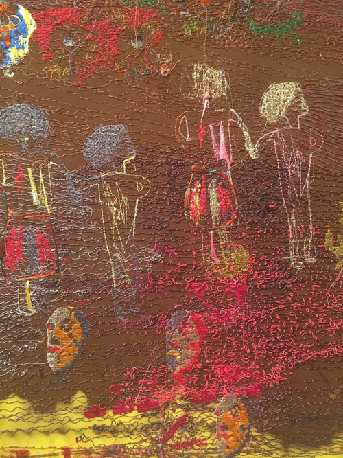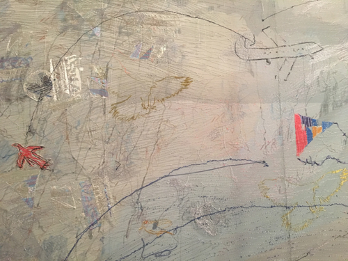 There were also 3 big panels Sky, Ground, Sea undertaken by Alice Kettle- huge machine embroidered works of art made with refugees contributions in the form of drawings mostly translated into stitch.