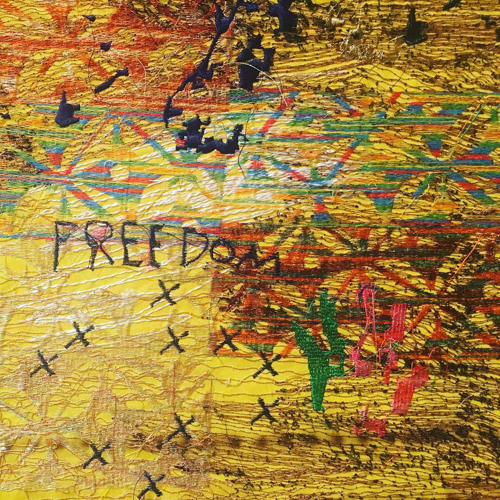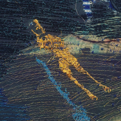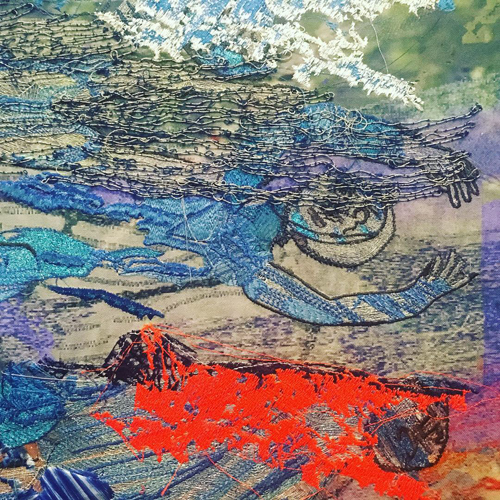Big sweeps of stitch and fabric expressing the broad big spaces that refugees have to cross and inhabit to survive.