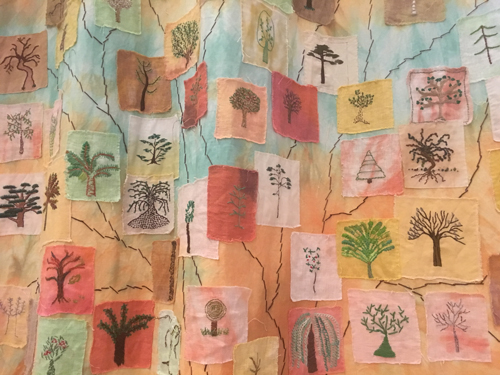 My first contact with it was through the Stitch a Tree Project where anyone could stitch a small piece of fabric with a tree to show their support for refugees. This project grew from work done in a Dunkirk refugee camp with children using the Tree of Life as a motif to think about strength and resilience.