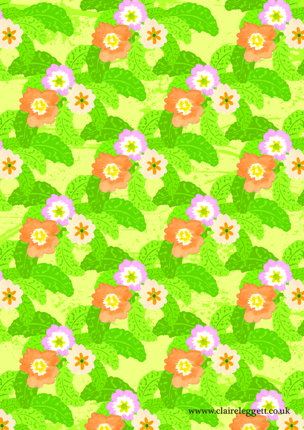 Earlier this week whilst under the heavy influence of sunshine, I put my Primula paintings to work in a pattern.