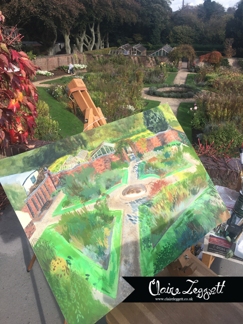 I have a room on site to call my studio and it leads out onto a flat roof with a magnificent birds-eye view of the walled garden (you can see where in this photo below)