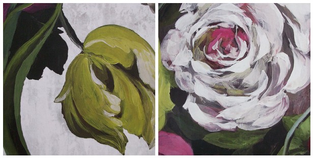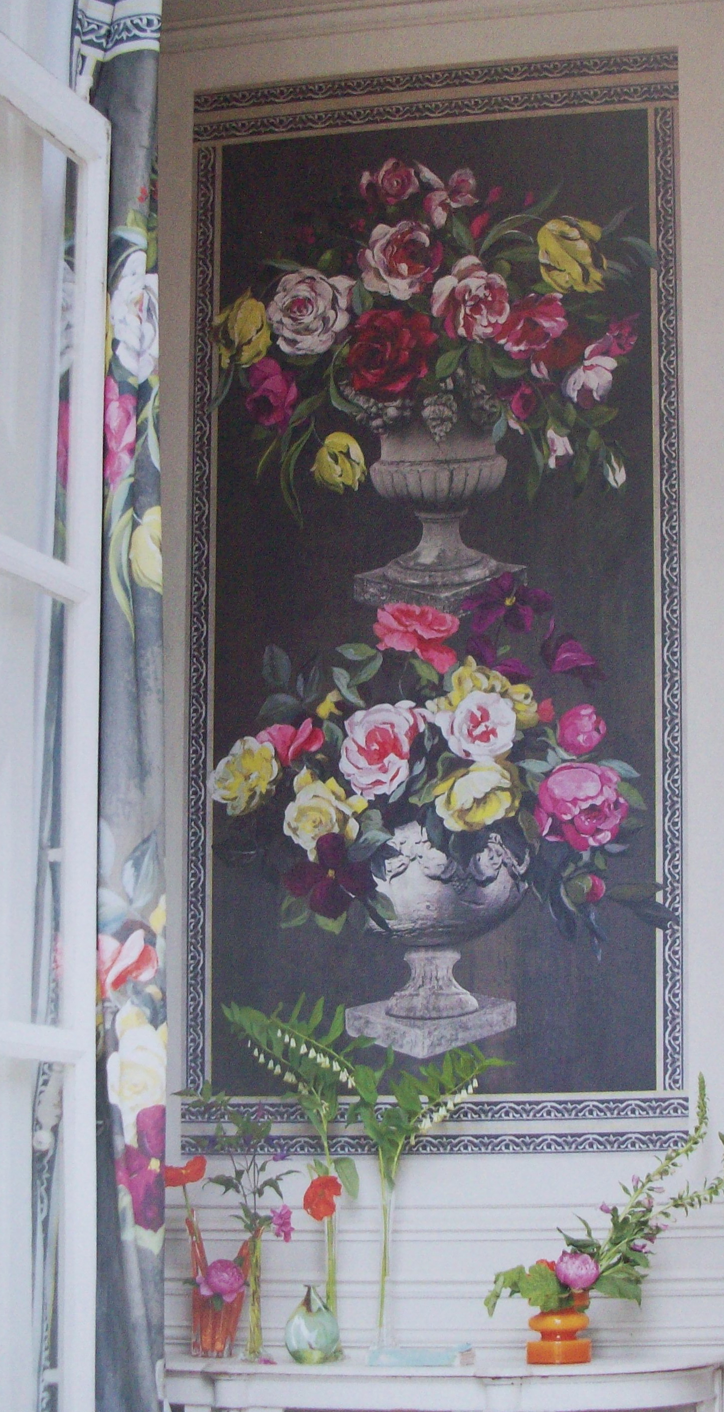 As we are decorating here (I think I may be saying this for a couple of years) I’ve been mooching through wallpaper books. I came across this new range by Designers Guild called Zephirine. I adore these painted flowers. The reproduction of them is amazing and I love the way the artist handled the paint and constructed the blooms. I’m not sure that I could live with the whole shebang (especially as D.G. added a photo of an ugly urn and spoilt it for me) but I love these little close-ups. It inspires me to find some dark, velvety roses to paint.