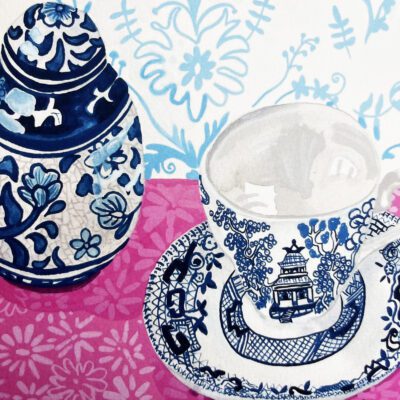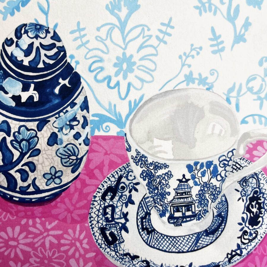 Willow Pattern is a Giclée Print of one of my original gouache watercolour paintings.
