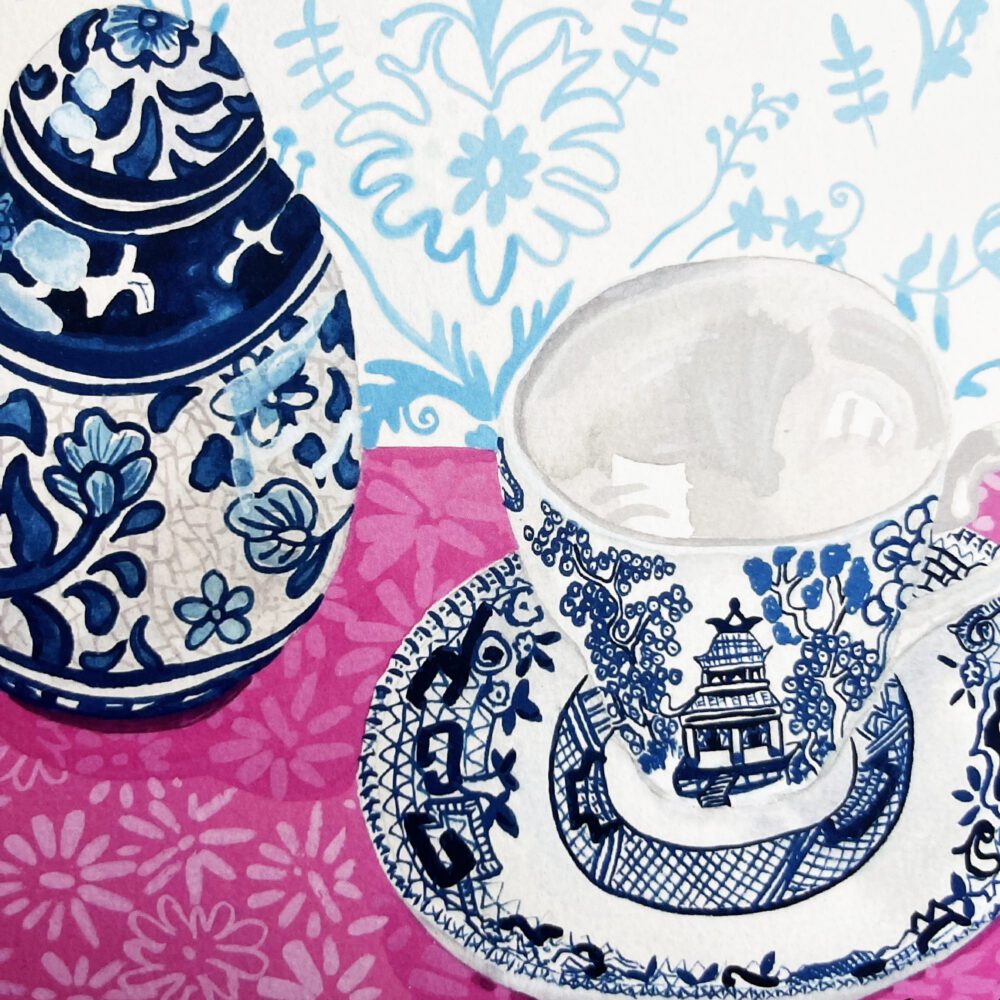 Willow Pattern is a Giclée Print of an original gouache watercolour painting.