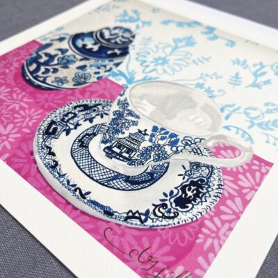 Willow Pattern is digitally printed onto Hahnemuhle paper which has the same watercolour tooth as the paper I paint onto so the finished result is very similar.
